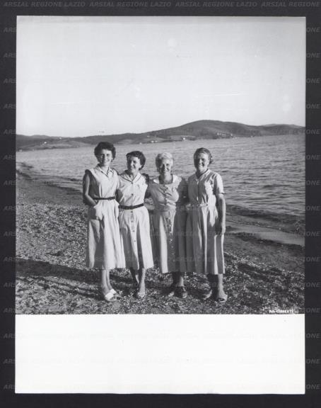 titolo attribuito: Ritratto di quattro donne sulla battigia. Le donne fanno parte del personale addetto alle cucine della colonia estiva