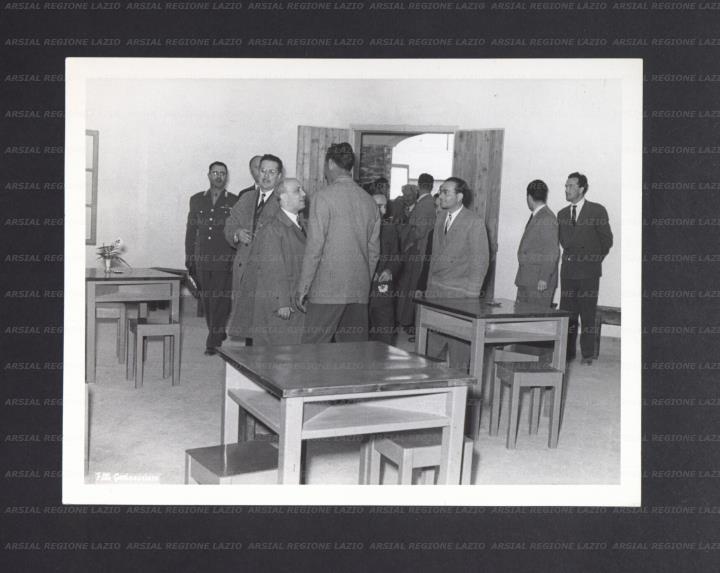 titolo attribuito: L'On. Amintore Fanfani si intrattiene con alcune persone, in una sala