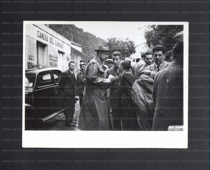 titolo attribuito: Alcune persone sostano di fronte all'entata della Camera del Lavoro